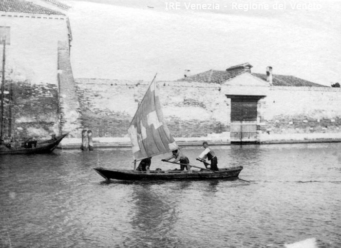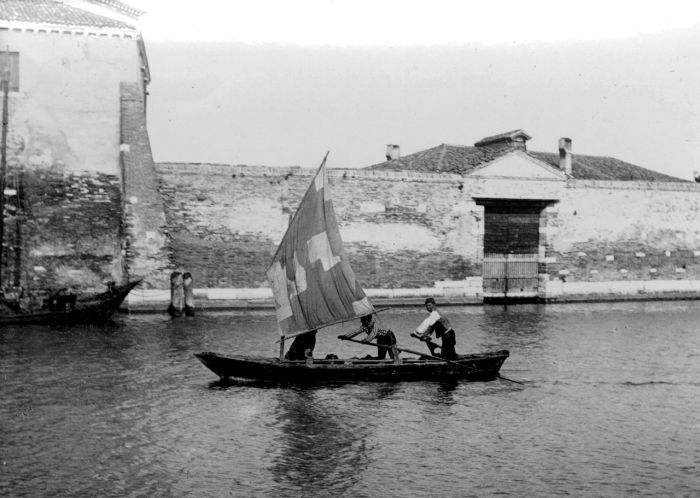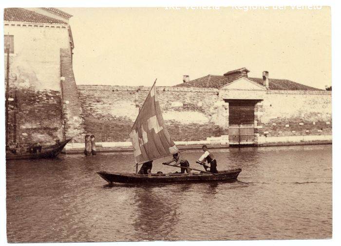Venezia - Vita veneziana e lagunare - Scene e costumi - Canale della Grazia o di S. Giorgio Maggiore - Imbarcazione: sandolo o sc'iopon