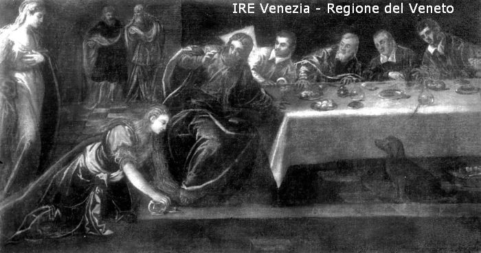 Venezia, riproduzione dipinto, Jacopo Tintoretto, "Banchetto con Cristo e la Maddalena", particolare