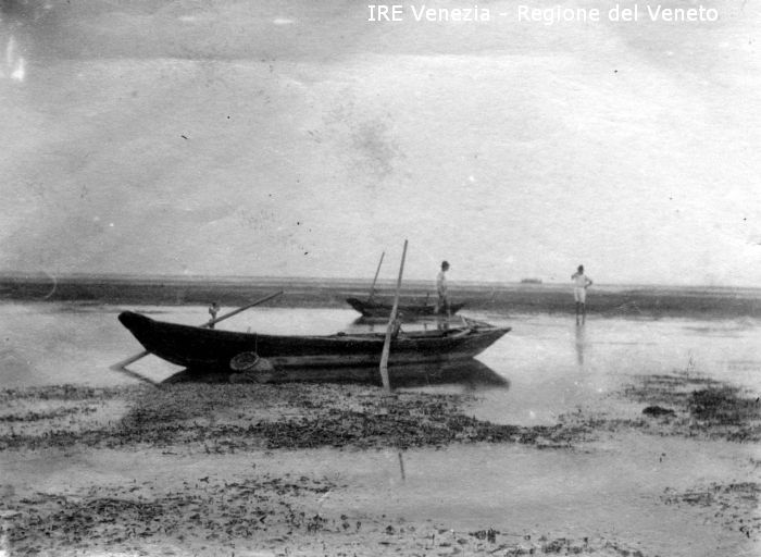 Venezia - Vita veneziana e lagunare - Scene e costumi - Pesca in Laguna - Laguna di Venezia - Imbarcazione: batela ? - Pescatori