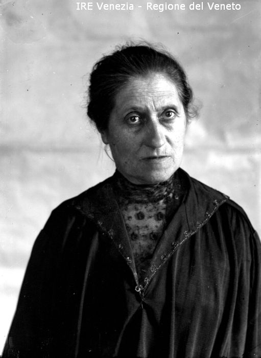 Ritratto di Angela Vorano - Ritratto: in interno, mezzo busto, frontale - Donna - Acconciatura: capelli raccolti - Vestiario: abito scuro, mantella