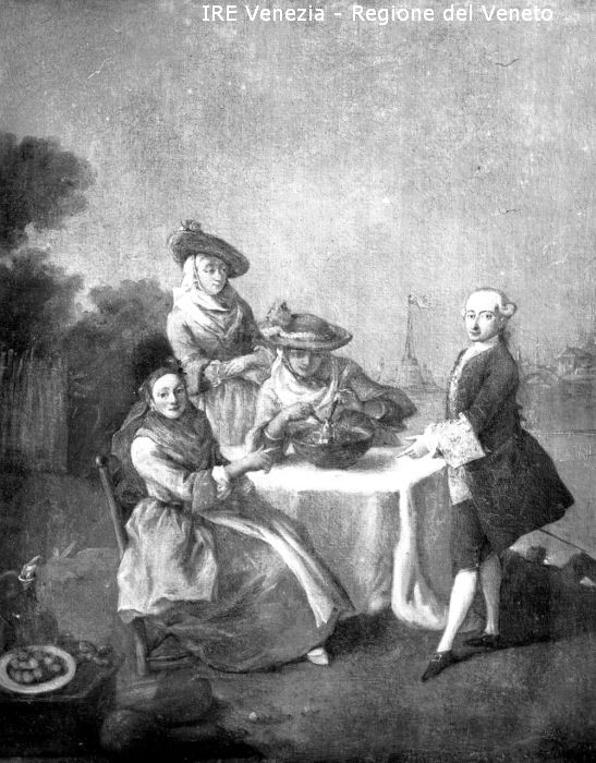 Venezia, Museo Civico, riproduzione dipinto, Pietro Longhi, "Negli orti dell'estuario"
