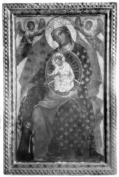 Venezia, Gallerie dell'Accademia, riproduzione dipinto, Paolo Veneziano, "Madonna in trono con bambino e due devoti"