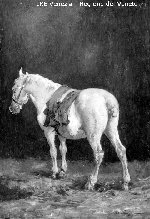 Venezia, riproduzione dipinto, Lorenzo Delleani, "Cavallo nella stalla"
