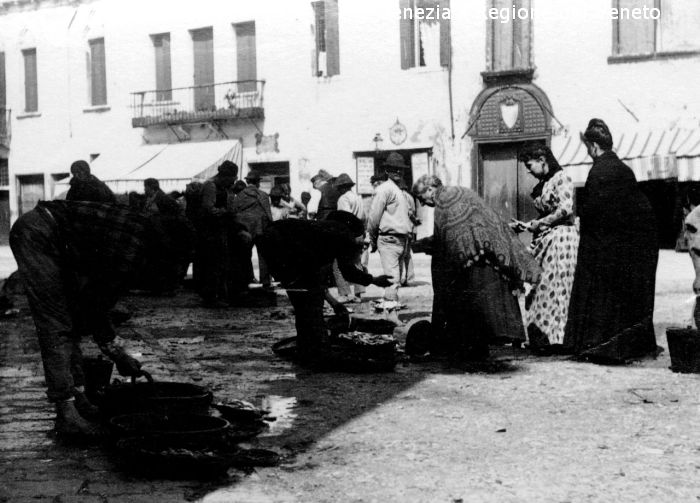 Venezia - Vita veneziana e lagunare - Scene e costumi - Mercato, negozi, bancarelle - Campo S. Margherita - Ambulanti - Popolane - Scene di mercato