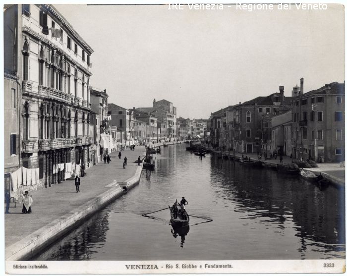 - ISCRIZIONI sul recto: nell'etichetta didascalica sotto l'immagine - Edizione inalterabile./ VENEZIA - Rio S. Giobbe e Fondamenta./ 3333 - fotografica -