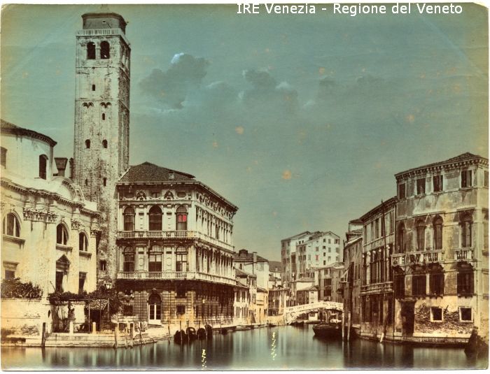 Venezia - Vedute, monumenti, luoghi - Centro storico - Canali e Rii - Canale di Cannaregio o di S. Giobbe - Chiesa di S. Geremia - Palazzo Labia - Ponte delle Guglie - Gondole ormeggiate