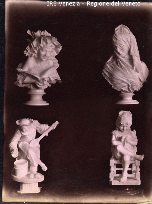 Busto di giovane con rondinella - Busto di donna velata - Pierrot - Bambina seduta con iscrizione scolpita alla base: "Volere è Potere"