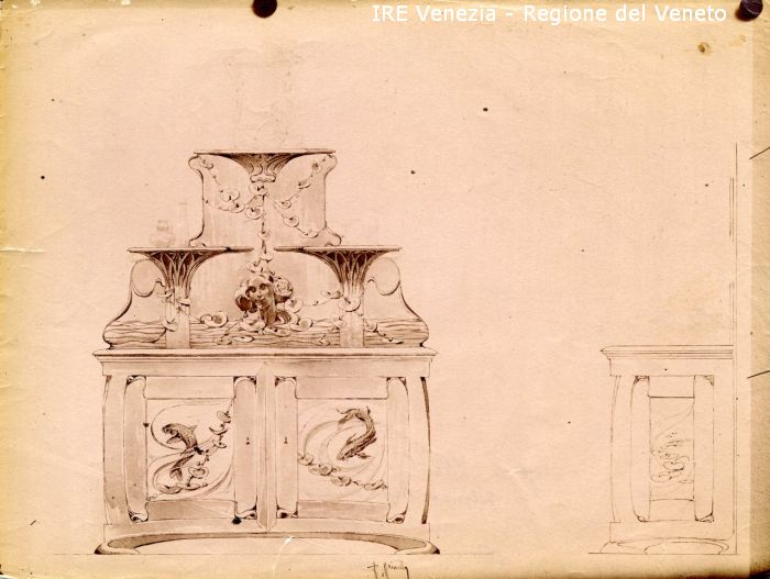 Venezia - Vita veneziana e lagunare - Attività private - Laboratori e Ditte di "Specialità veneziane" - Artigianato: mobilio, arredo e varie - The Venice Art & C. - Disegno di Raffaele Mainella - Progetto di un mobile