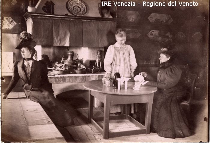 Venezia - Vita veneziana e lagunare - Attività private - Laboratori e Ditte di "Specialità veneziane" - Artigianato: varie - Miss H. G. Macy - Interni della casa-atelier - Cucina - Donne: tre