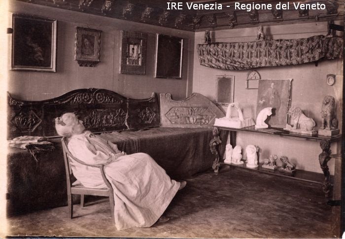 Venezia - Vita veneziana e lagunare - Attività private - Laboratori e Ditte di "Specialità veneziane" - Artigianato: varie - Miss H. G. Macy - Interni della casa-atelier - Quadri e oggetti d'arte - Donna seduta