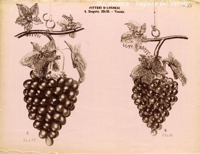 Venezia - Vita veneziana e lagunare - Attività private - Laboratori e Ditte di "Specialità veneziane" - Artigianato: vetrerie - Ditta Pitteri & Luchesi - Campionario - Oggetti di vetro - Grappoli d'uva: due