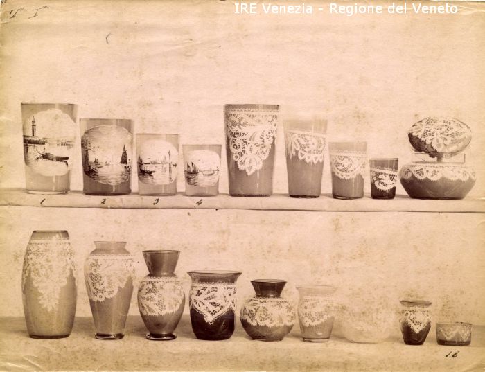 Venezia - Vita veneziana e lagunare - Attività private - Laboratori e Ditte di "Specialità veneziane" - Artigianato: vetrerie - Ditta Pitteri & Luchesi - Campionario - Oggetti di vetro - Bicchieri e vasi