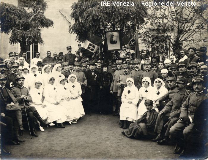 Ospedale Marco Foscarini: presidenza, direzione, dottori, dame della Croce Rossa e feriti