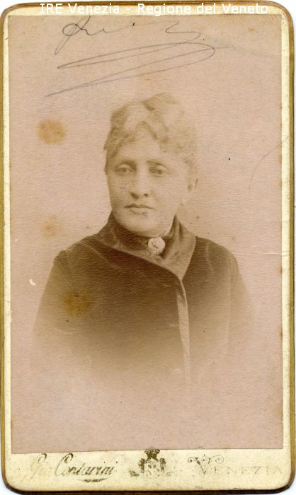 - STEMMI sul verso - commerciale - Marchio - Giovanni Contarini - Gio. Contarini/ FOTOGRAFO/ di/ S.M. LA REGINA D'ITALIA/ E/ delle/ L.L.A.A.R.R. i principi di Napoli e di Genova/ PREMIATO CON REALI ONORIFICENZE/ E DIPLOMA DI PRIMO GRADO/ Venezia/ S. Moisè 2090 vis-a-vis del Restaurant Bauer