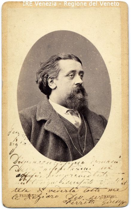 - ISCRIZIONI sul recto: nell'immagine e sul supporto secondario: in basso - Gent[...]/ Sig[...]/ [...] domani/ [...]/ [...]/ [...]/ [...]/ [...] nell'at/ tesa di vederla tosto me/ le [...]iaro Dev. servo/ Ferretto Giuseppe - a penna -