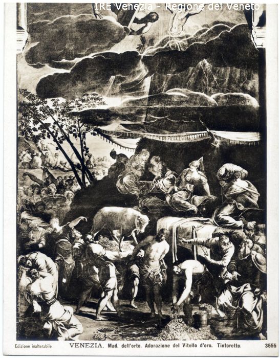 - ISCRIZIONI sul recto: in basso - Edizione inalterabile/ VENEZIA./ Mad. dell'orto. Adorazione del Vitello d'oro. Tintoretto./ 3555 - fotografica -
