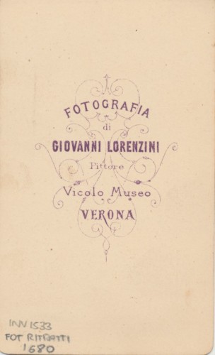 - STEMMI Sul supporto secondario; verso - dell'autore - Marchio - Fotografia/Giovanni Lorenzini/ Pittore/ Vicolo Museo/ Verona