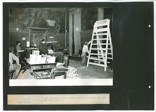 Ateneo Veneto Lavori di restauro 1956-57: foto n° 40: Sala Tommaseo - inizio delle opere di distacco dei quadri alle pareti.