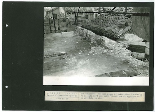 Ateneo Veneto Lavori di restauro 1956-57: foto n° 47: Ala Tommaseo - Vecchio piano di sottotetto. Particolare al lato nord con tetto vicino che si appoggia sulla grondaia in vivo.