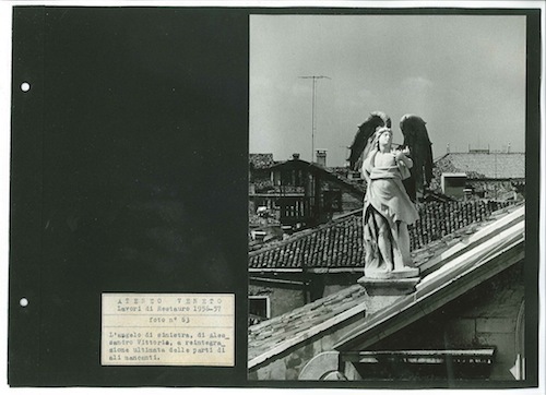 Ateneo Veneto Lavori di restauro 1956-57: foto n° 63: Langelo di sinistra, di Alessandro Vittoria, a reintegrazione ultimata delle parti di ali mancanti.