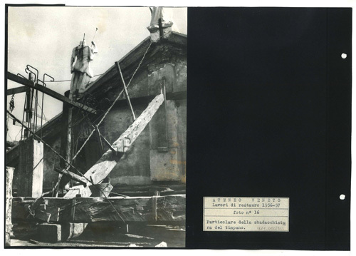 Ateneo Veneto Lavori di restauro 1956-57: foto n° 16: Particolare della sbadacchiatura del timpano.