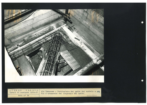 Ateneo Veneto Lavori di restauro 1956-57: foto n° 56: Ala Tommaseo - Particolare del getto del cordolo e gabbia darmamento del diagonale del tetto.