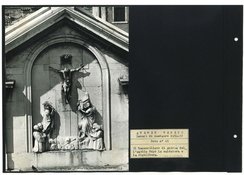 Ateneo Veneto Lavori di restauro 1956-57: foto n° 60: Il bassorilievo di Andrea dellAquila dopo la saldatura e la ripulitura.
