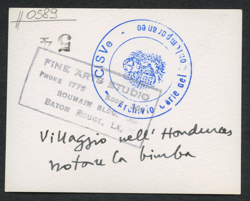 - ISCRIZIONI supporto primario: verso: in basso al centro - Villaggio nell'Honduras/ notare la bimba - a matita -
