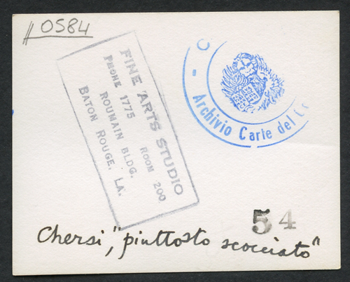 - ISCRIZIONI supporto primario: verso: in basso - Chersi,"piuttosto scocciato" - a matita -