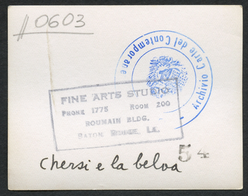 - ISCRIZIONI supporto primario: verso: in basso al centro - Chersi e la belva - a matita -