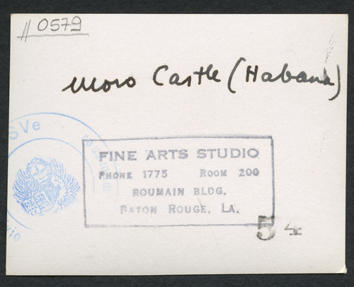 - ISCRIZIONI supporto primario: verso: al centro - Moro [sic] Castle (Habana) - a matita -