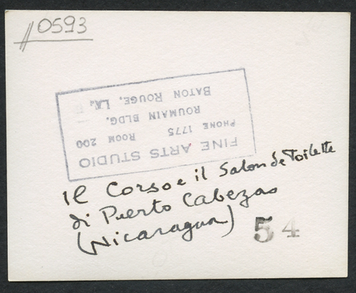 - ISCRIZIONI supporto primario: verso: al centro - Il Corso e il Salon de Toilette/ di Puerto Cabezas/ (Nicaragua) - a matita -