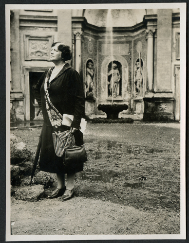 Donna in piedi davanti a una fontana