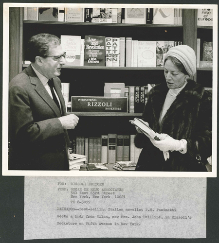 PAISANOS - Best-selling Italian novelist P. M. Pasinetti meets a lady from Milan, now Mrs. John Phillips, in Rizzoli's Bookstore on Fifth Avenue in New York.