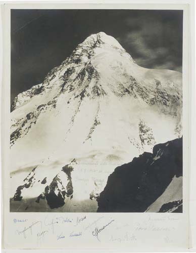 - ISCRIZIONI supporto primario: recto: in basso al centro - I componenti della Spedizione/ "K2 - 1954" al Signo[r]/ Giuseppe Mazzotti - a penna -