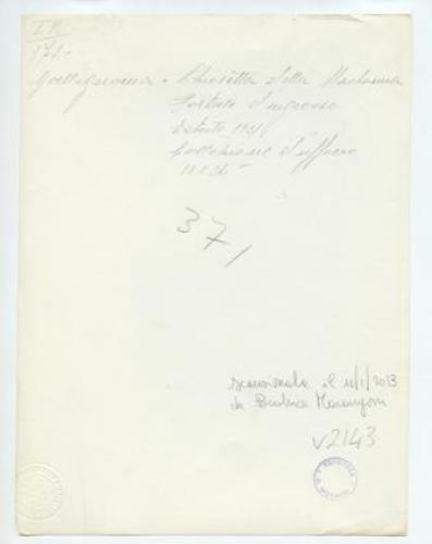 - ISCRIZIONI supporto primario: verso: in alto a sinistra - Gallignana - Chiesetta della Madonna/ Portale d'ingresso/ Estate 1921/ collezione d'ufficio/ 18x24 - a matita -