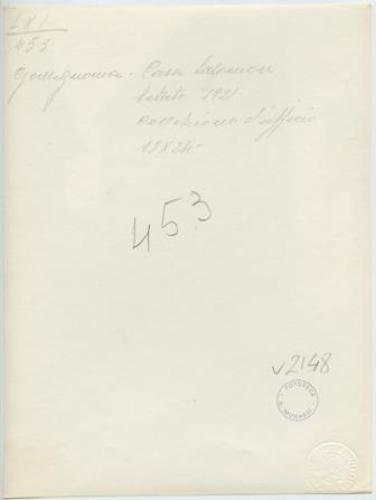 - NOTIZIE STORICO CRITICHE La fotografia fa parte dell'insieme archivistico denominato "Venezia Giulia" (tre cartelle: V. VIII, V. IX, V. X), nello specifico, è conservata all'interno della cartella V. IX. E' stata realizzata nell'estate 1921 da Pietro Opiglia, che dal 1908 al 1947, svolse il ruolo di fotografo presso il Museo Civico triestino e del quale si serviva l'Ufficio Belle Arti della Venezia Giulia durante le proprie campagne fotografiche. In questo caso, l'Ufficio Belle Arti aveva promosso una campagna ricognitiva circa le opere d'arte presenti sul territorio transfrontaliero che oggi comprende il Friuli Venezia Giulia, la Croazia e la Slovenia. Si ricorda, inoltre, che Antonio Morassi svolse il ruolo di funzionario sovrintendente presso l'Ufficio Belle Arti della Venezia Giulia dal 1920 al 1925.