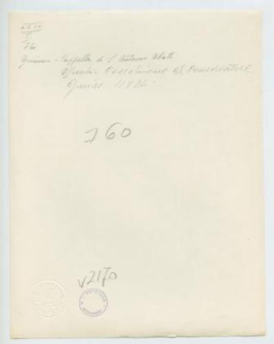 - ISCRIZIONI supporto primario: verso: in alto al centro - Gimino - Cappella di S. Antonio Abate/ Affreschi. Collezione ex Conservatore/ Gnirs 18x24 - a matita -