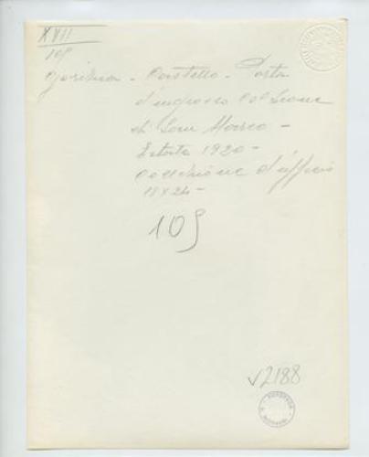 - NOTIZIE STORICO CRITICHE La fotografia fa parte dell'insieme archivistico denominato "Venezia Giulia" (tre cartelle: V. VIII, V. IX, V. X), nello specifico, è conservata all'interno della cartella V. IX. E' stata realizzata presumibilmente tra l'estate e l'autunno 1920 da Pietro Opiglia, che dal 1908 al 1947, svolse il ruolo di fotografo presso il Museo Civico triestino e del quale si serviva l'Ufficio Belle Arti della Venezia Giulia durante le proprie campagne fotografiche. In questo caso, l'Ufficio Belle Arti aveva promosso una campagna ricognitiva circa le opere d'arte presenti sul territorio transfrontaliero che oggi comprende il Friuli Venezia Giulia, la Croazia e la Slovenia. Si ricorda, inoltre, che Antonio Morassi svolse il ruolo di funzionario sovrintendente presso l'Ufficio Belle Arti della Venezia Giulia dal 1920 al 1925.