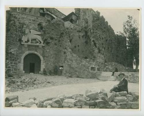 Gorizia - Castello. Porta d'ingresso col leone di San Marco. Estate 1920.