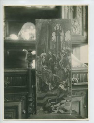 - NOTIZIE STORICO CRITICHE La fotografia fa parte dell'insieme archivistico denominato "Venezia Giulia" (tre cartelle: V. VIII, V. IX, V. X), nello specifico, è conservata all'interno della cartella V. IX. E' stata realizzata nella primavera 1922 da Pietro Opiglia, che dal 1908 al 1947, svolse il ruolo di fotografo presso il Museo Civico triestino e del quale si serviva l'Ufficio Belle Arti della Venezia Giulia durante le proprie campagne fotografiche. In questo caso, l'Ufficio Belle Arti aveva promosso una campagna ricognitiva circa le opere d'arte presenti sul territorio transfrontaliero che oggi comprende il Friuli Venezia Giulia, la Croazia e la Slovenia. Si ricorda, inoltre, che Antonio Morassi svolse il ruolo di funzionario sovrintendente presso l'Ufficio Belle Arti della Venezia Giulia dal 1920 al 1925.
