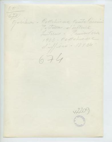 - ISCRIZIONI supporto primario: verso: in alto - Gorizia - Collezione Conte Coronini/ Portella d'altare/ Interno. Primavera/ 1922. Collezione/ d'ufficio 18x24 - a matita -