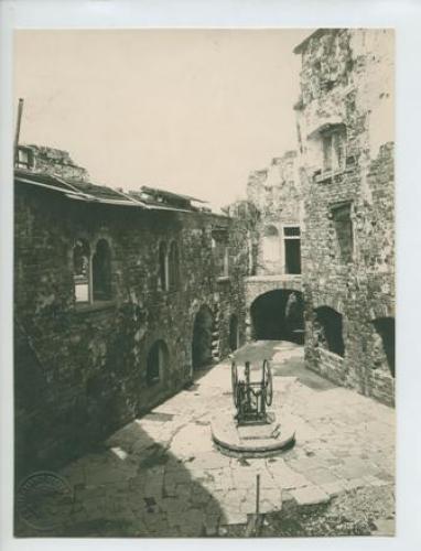 Gorizia - Castello: il cortile con le bifore ricostruite. Primavera 1924.