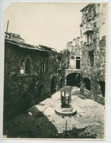 Gorizia - Castello: il cortile con le bifore ricostruite. Primavera 1924.