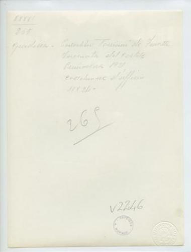 - NOTIZIE STORICO CRITICHE La fotografia fa parte dell'insieme archivistico denominato "Venezia Giulia" (tre cartelle: V. VIII, V. IX, V. X), nello specifico, è conservata all'interno della cartella V. IX. E' stata realizzata nella primavera 1921 da Pietro Opiglia, che dal 1908 al 1947, svolse il ruolo di fotografo presso il Museo Civico triestino e del quale si serviva l'Ufficio Belle Arti della Venezia Giulia durante le proprie campagne fotografiche. In questo caso, l'Ufficio Belle Arti aveva promosso una campagna ricognitiva circa le opere d'arte presenti sul territorio transfrontaliero che oggi comprende il Friuli Venezia Giulia, la Croazia e la Slovenia. Si ricorda, inoltre, che Antonio Morassi svolse il ruolo di funzionario sovrintendente presso l'Ufficio Belle Arti della Venezia Giulia dal 1920 al 1925.