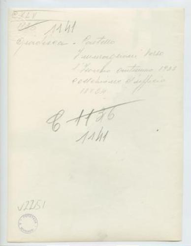 - NOTIZIE STORICO CRITICHE La fotografia fa parte dell'insieme archivistico denominato "Venezia Giulia" (tre cartelle: V. VIII, V. IX, V. X), nello specifico, è conservata all'interno della cartella V. IX. E' stata realizzata nell'autunno 1923 da Pietro Opiglia, che dal 1908 al 1947, svolse il ruolo di fotografo presso il Museo Civico triestino e del quale si serviva l'Ufficio Belle Arti della Venezia Giulia durante le proprie campagne fotografiche. In questo caso, l'Ufficio Belle Arti aveva promosso una campagna ricognitiva circa le opere d'arte presenti sul territorio transfrontaliero che oggi comprende il Friuli Venezia Giulia, la Croazia e la Slovenia. Si ricorda, inoltre, che Antonio Morassi svolse il ruolo di funzionario sovrintendente presso l'Ufficio Belle Arti della Venezia Giulia dal 1920 al 1925.