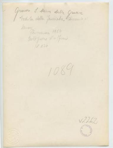 - ISCRIZIONI supporto primario: verso: in alto al centro - Grado - S. Maria delle Grazie/ Veduta della facciata durante i/ lavori/ Primavera 1924/ Collezione d'ufficio/ 18x24 - a matita -