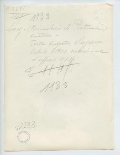 - NOTIZIE STORICO CRITICHE La fotografia fa parte dell'insieme archivistico denominato "Venezia Giulia" (tre cartelle: V. VIII, V. IX, V. X), nello specifico, è conservata all'interno della cartella V. IX. E' stata realizzata nell'estate 1923 da Pietro Opiglia, che dal 1908 al 1947, svolse il ruolo di fotografo presso il Museo Civico triestino e del quale si serviva l'Ufficio Belle Arti della Venezia Giulia durante le proprie campagne fotografiche. In questo caso, l'Ufficio Belle Arti aveva promosso una campagna ricognitiva circa le opere d'arte presenti sul territorio transfrontaliero che oggi comprende il Friuli Venezia Giulia, la Croazia e la Slovenia. Si ricorda, inoltre, che Antonio Morassi svolse il ruolo di funzionario sovrintendente presso l'Ufficio Belle Arti della Venezia Giulia dal 1920 al 1925.