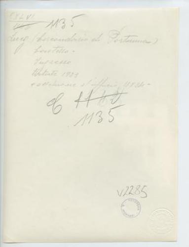 - NOTIZIE STORICO CRITICHE La fotografia fa parte dell'insieme archivistico denominato "Venezia Giulia" (tre cartelle: V. VIII, V. IX, V. X), nello specifico, è conservata all'interno della cartella V. IX. E' stata realizzata nell'estate 1923 da Pietro Opiglia, che dal 1908 al 1947, svolse il ruolo di fotografo presso il Museo Civico triestino e del quale si serviva l'Ufficio Belle Arti della Venezia Giulia durante le proprie campagne fotografiche. In questo caso, l'Ufficio Belle Arti aveva promosso una campagna ricognitiva circa le opere d'arte presenti sul territorio transfrontaliero che oggi comprende il Friuli Venezia Giulia, la Croazia e la Slovenia. Si ricorda, inoltre, che Antonio Morassi svolse il ruolo di funzionario sovrintendente presso l'Ufficio Belle Arti della Venezia Giulia dal 1920 al 1925.
