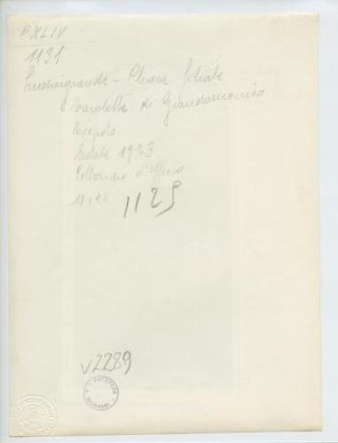 - NOTIZIE STORICO CRITICHE La fotografia fa parte dell'insieme archivistico denominato "Venezia Giulia" (tre cartelle: V. VIII, V. IX, V. X), nello specifico, è conservata all'interno della cartella V. IX. E' stata realizzata nell'estate 1923 da Pietro Opiglia, che dal 1908 al 1947, svolse il ruolo di fotografo presso il Museo Civico triestino e del quale si serviva l'Ufficio Belle Arti della Venezia Giulia durante le proprie campagne fotografiche. In questo caso, l'Ufficio Belle Arti aveva promosso una campagna ricognitiva circa le opere d'arte presenti sul territorio transfrontaliero che oggi comprende il Friuli Venezia Giulia, la Croazia e la Slovenia. Si ricorda, inoltre, che Antonio Morassi svolse il ruolo di funzionario sovrintendente presso l'Ufficio Belle Arti della Venezia Giulia dal 1920 al 1925.
